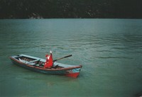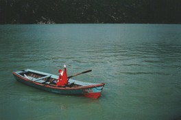 [Hombre con vestuario navideño sobre un bote] [fotografía]. Chile : [Editor no identificado] , [1999]. 1 Fotografía : Formato digital, Monocromo. .