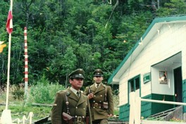 [Dos carabineros al exterior del retén de Caleta Tortel] [fotografía]. Chile : [Editor no identificado] , [fecha no identificada].. 1 Fotografía : Formato digital, Policromo. .