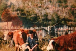 En la fotografía aparece Apolinario Hernández. Detrás de él se pueden apreciar tres vacas.