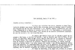 Los Angeles, California [a] Fernando Alegría Carta, 1 de Junio 1961, [manuscrito] Enrique Lafourcade.