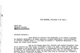 Los Angeles, California [a] Fernando Alegría Carta, 8 de diciembre 1961, [manuscrito] Enrique Lafourcade.