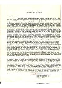 Santiago, Chile [a] Fernando Alegría Carta, 10 de mayo 1971, [manuscrito] Enrique Lafourcade.