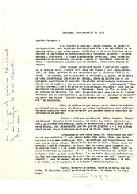 Santiago, Chile [a] Fernando Alegría Carta, 16 de septiembre 1972, [manuscrito] Enrique Lafourcade.