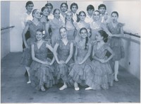 [Estudiantes de Alicia Targarona en la Escuela de Ballet del Teatro Municipal de Santiago]. Santiago : [1985?]. 1 fotografía : Formato digital, monocromo. .