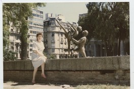 [Alicia Targarona junto a estatua de bailarines del Teatro Colón en Argentina] Buenos Aires, Argentina: 1984. 1 fotografía : Formato digital, monocromo. .