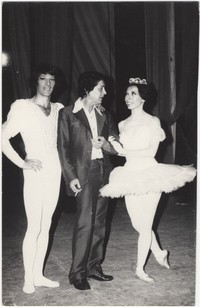 [José Luis Sobarzo, Paco Mairena y Haydeé Gaycho después de la función del Cascanueces] Santiago de Chile: [1971?]. 1 fotografía : Formato digital, monocromo. .