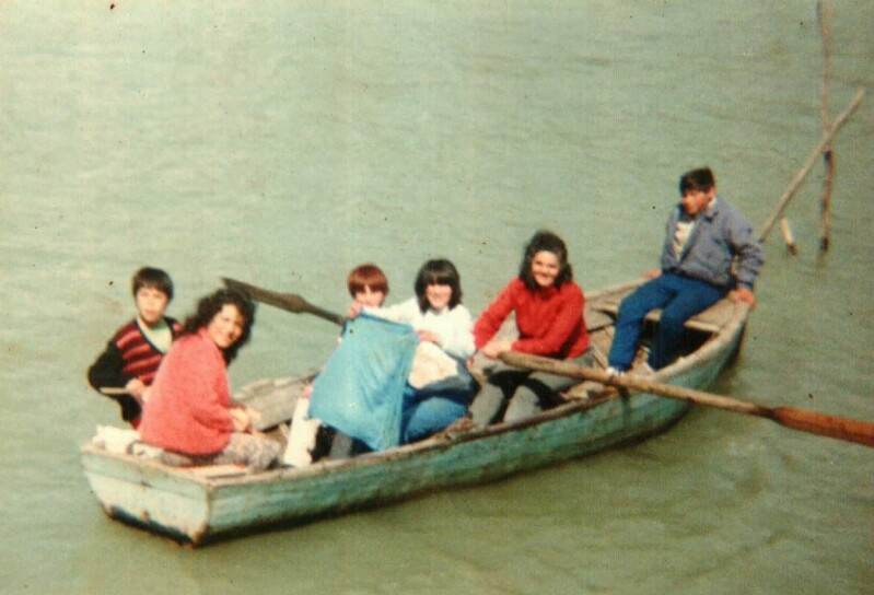 [Grupo de personas sobre un bote a remos en Playa Ancha] [fotografía].