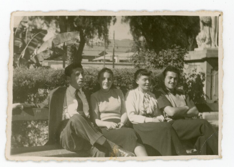 [Grupo de jóvenes sentados en la plaza de Copiapó] [Fotografía].