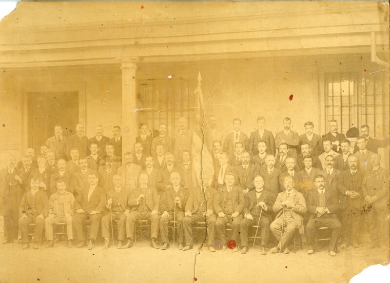 [Retrato grupal de hombres pertenecientes a la Sociedad Italiana de Copiapó] [Fotografía].