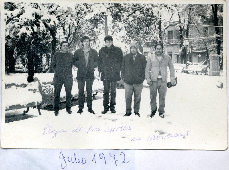 Plaza de Los Andes en nevadas : Samuel Reinoso, Juan Mura León, Manuel González [Fotografía].