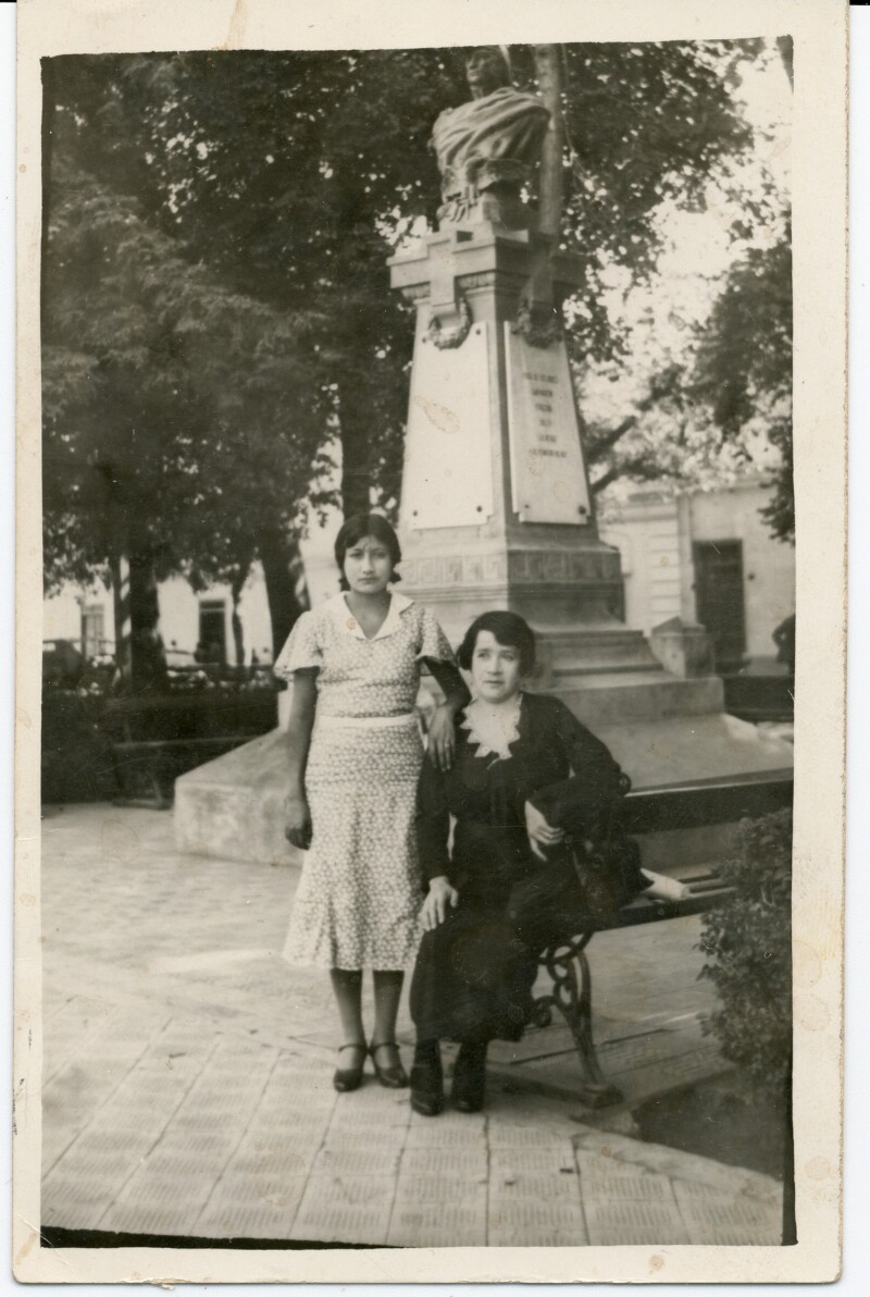 Blanca Elena Clavijo junto a una mujer en la Plaza de Los Andes : [Fotografía].