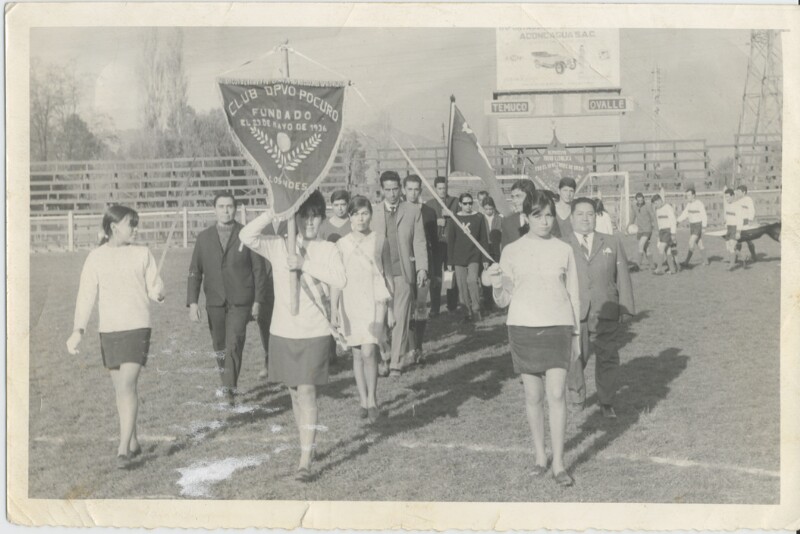 Desfile Club Deportivo Pocuro : Cecilia Contreras, Erica Vargas, Bernarda Muñoz, Bernardo Vergara Berríos, Edith Vergara Berríos, Julio Vergara Berríos, Renato Muñoz, Nelson Vergara Navarro, Washington Basaes, Teodoro Carvallo. [Fotografía].