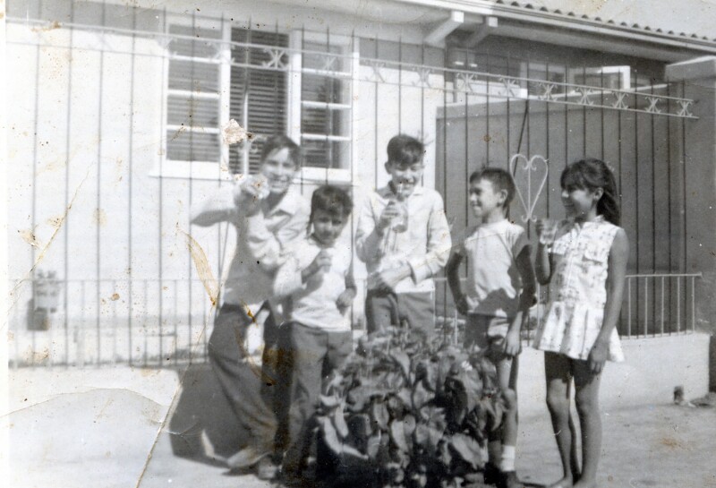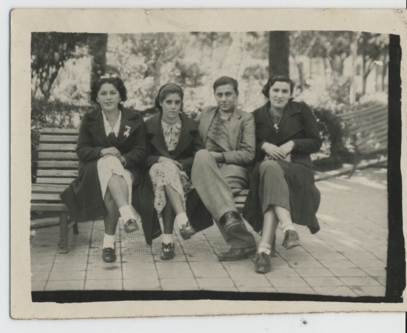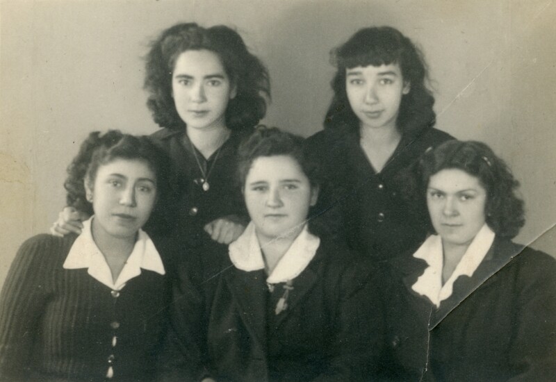 Emilia Tapia y compañeras de curso: Clara Fernandez, Nadia Cabrera, Alicia Cabrera, Isabel Tapia [Fotografía].