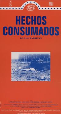 Hechos consumados [estampa] : de Juan Radrigán. Santiago, Chile : Universidad de Chile-Facultad de Arte, [1999] (Santiago, Chile : Trazo producciones). 1 cartel (afiche) : color ; 66 x 35 cm .