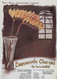 Bienvenida Clarisa (la hora santa) / [estampa] : dirección y dramaturgia: Antonio Jerez Pérez. Santiago : [editor no identificado], [199-?] (Santiago : Gráfica Miguel Ro). 1 cartel (afiche) : color ; 52 x 38 cm. .