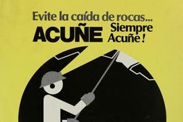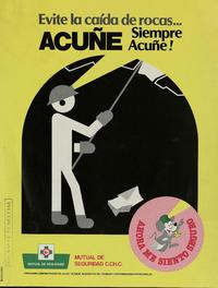 Evite la caída de rocas... acuñe, siempre acuñe!. [estampa] : Santiago, [Chile] : Mutual de Seguridad, [199-?] (Santiago, [Chile] : Talleres de Editorial Universitaria). Santiago : color ; 43 x 33 cm. .