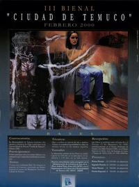 III Bienal "Ciudad de Temuco" [estampa]. Temuco, [Chile] : Municipalidad de Temuco, 2000. 1 cartel (afiche) : color ; 59 x 44.5 cm. .