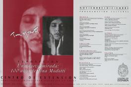 Una nueva mirada 100 años de Tina Modotti. [estampa] : Santiago, Chile : Centro de Extensión, Pontificia Universidad Católica, 1999. 1 cartel (afiche) : color ; 38 x 58 cm. .