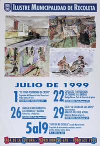 Ilustre Municipalidad de Recoleta julio de 1999. [estampa] : Santiago, Chile : Corporación Cultural de la Ilustre Municipalidad de Recoleta, 1999. 1 cartel (afiche) : color ; 54 x 37 cm. .