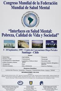 Congreso mundial de la Federación Mundial de Salud Mental "interfaces en salud mental: pobreza, calidad de vida y sociedad". [estampa] : Santiago, Chile : [Editor no identificado], 1999. 1 cartel (afiche) : color ; 54 x 37 cm. .