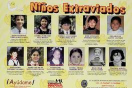 Niños extraviados ¡Ayúdame! Corporación de Niños y Adultos Extraviados. [estampa]. Santiago, Chile : Policía de Investigaciones de Chile, 1999. 1 cartel (afiche) : color ; 27 x 38 cm. .