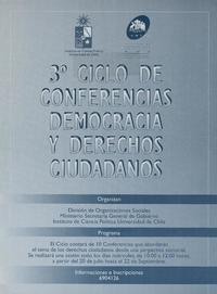 3° Ciclo de conferencias democracia y derechos ciudadanos [estampa]. Santiago, Chile : [Editor no identificado], [200-?]. 1 cartel (afiche) : color ; 45 x 34 cm. .