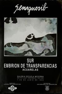 Senaquerib Sur: embrión de transparencias. [estampa] : Santiago, Chile : Anibal Pinto S.A. ; 1993. 1 cartel (afiche) : color ; 54 x 37 cm. .