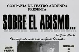 Compañía de Teatro Addenda presenta: Sobre el abismo... obra inspirada en al vida de Gloria Simonetti [estampa] : de Cesar Alarcón.