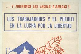 Los trabajadores y el pueblo en la lucha por la libertad ... y abriremos las anchas alamedas!!. [estampa] : [Chile] : [Editor no identificado], [198-?]. 1 cartel (afiche) : color ; 36 x 25 cm. .