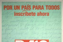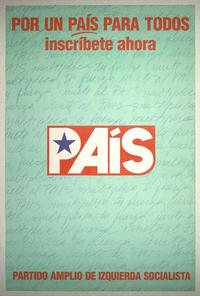 Por un país para todos inscríbete ahora país. [estampa] : [Chile] Partido Amplio de Izquierda Socialista, [198-?]. 1 cartel (afiche) : color ; 55 x 36 cm. .