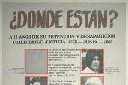 ¿Dónde están? a 13 años de su detención y desaparición Chile exige justicia 1975-junio-1988. [estampa] :