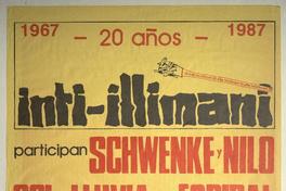 Inti-Illimani [estampa]. Santiago, Chile : A-A Producciones, 1987. 1 cartel (afiche) : color ; 55 x 39 cm. .