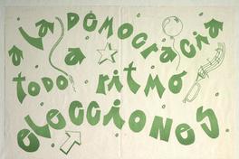 A la democracia a todo ritmo, elecciones universales en la feses [estampa]. [Chile] : JJ.CC., [198-?]. 1 cartel (afiche) : 44 x 33 cm. .