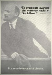 "Es imposible avanzar sin marchar hacia el socialismo" V.I. Lenin por una democracia obrera. [estampa]. [Chile] : [Editor no identificado], [198-?]. 1 cartel (afiche) : blanco y negro ; 54 x 37 cm. .