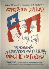 Rescatemos la educación y la cultura para Chile y su pueblo asamblea de la civilidad. [estampa] : [Chile] : CONEDUC, 1987. 1 cartel (afiche) : color ; 56 x 39 cm. .