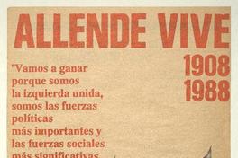 Allende vive: 1908-1988 "vamos a ganar porque somos la izquierda unida, somos las fuerzas políticas más importantes y las fuerzas sociales más significativas. Por eso vamos a ganar: ¡Porque somos los más y somos los mejores!". [estampa] :