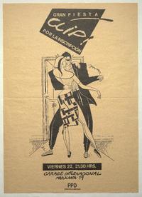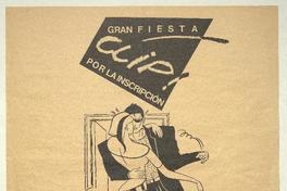 Gran fiesta Clip! por la inscripción [estampa]. [Chile] : PPD, [198-?]. 1 cartel (afiche) : blanco y negro ; 38 x 27 cm. .