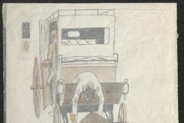 Dibujo de un hombre dentro de una carroza y el conductor sin conocimiento a punto de caer.