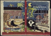 [Dibujo portada libro El fantasma del zoo] [original de arte] : Jorge Christie. 1 dibujo : color, lápiz y tempera ; 25,5 x 35,5 cm. .