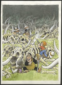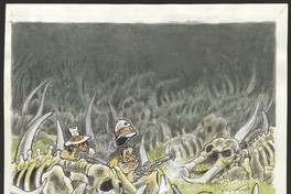 [Dibujo para portada del libro El marfil de los matabekes] [original de arte] / Themo Lobos. Santiago : Comunicaciones Noreste, 2004. 1 dibujo : Tinta y acuarela ; 33,5 x 24,5 cm. .