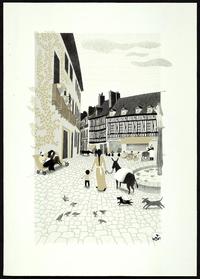 La colección consta de 2 dibujos 1.Mujer, niño y burro--2. Niño con linterna.