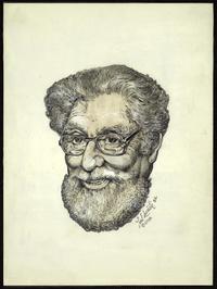 Caricatura de Francisco Coloane. Premio Nacional de Literatura 1964. Publicado en Revista Huelen, Sept 1982. Santiago de Chile.