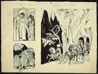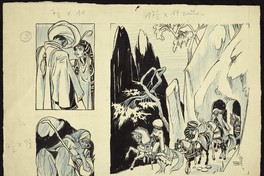 [Dibujo revista El Peneca] [original de arte] : Mario Silva Ossa ; seudónimo: Coré. Santiago : [Zig-Zag], [19--?]. 1 dibujo : Tinta y lápiz azul sobre papel ; 29 x 39 cm. .
