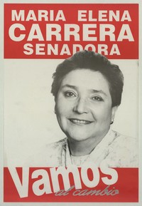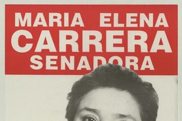 María Elena Carrera senadora. [estampa] : [Chile] : [Editor no identificado], [1989]. 1 cartel (afiche) : color ; 54 x 38 cm. .