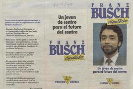 Franz Busch diputado Un joven de centro para el futuro del centro. [estampa] : [Chile] : [Editor no identificado], [1989]. 1 tríptico (afiche) : color ; 21 x27 cm. .