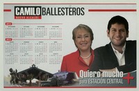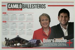 Camilo Ballesteros Nuevo Alcalde. [estampa] : [Chile] : [Editor no identificado], [2012]. 1 calendario (afiche) : color ; 28 x 42 cm. .