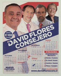 1 calendario con David Flores candidato a consejero regional, acompañado de Guido Girardi, Oscar Santelices y Michelle Bachelet.