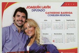 [Joaquín Lavín León a Diputado y Catherine Barriga a Consejera Regional] [estampa]. [Chile] : [Editor no identificado], 2014. 1 Calendario (afiche) : color ; 26 x 33 cm. .