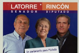 Un parlamento para Michelle [estampa]. [Chile] : [Editor no identificado], [2005]. 1 calendario (afiche) : color ; 49 x 33 cm. .