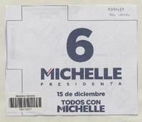 6 Michelle Presidenta 15 de diciembre todos con Michelle. [estampa] : [Chile] : Michelle Presidenta, [2013]. 1 hoja : facsímil ; 14 x 17 cm. .